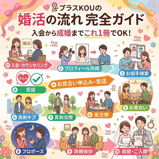 婚活カウンセラーKOUがあなたの婚活を全面サポート。入会準備から成婚退会まで、すべてのステップをわかりやすく解説します。