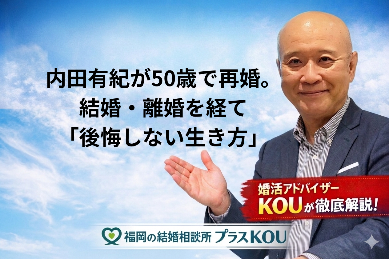内田有紀さんが50歳で再婚を発表しました。27歳での結婚と離婚、2度の活動休止を経て「もう絶対に後悔するような生き方はしたくない」と語った彼女。その言葉は、婚活中のあなたにも深く響くのではないでしょうか? 過去の経験は失敗ではなく、未来の幸せを掴むための大切な土台です。この記事では、内田有紀さんの人生観から婚活のヒントを読み解きます。