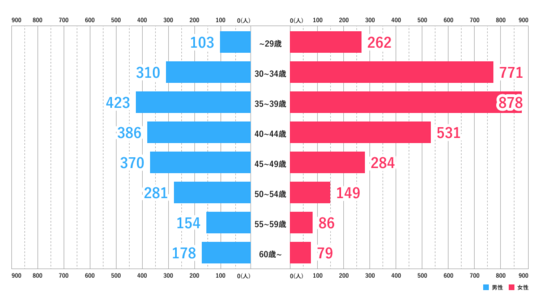 | 35〜39歳 | 10,787人(男性最多) | 11,380人(女性最多) |